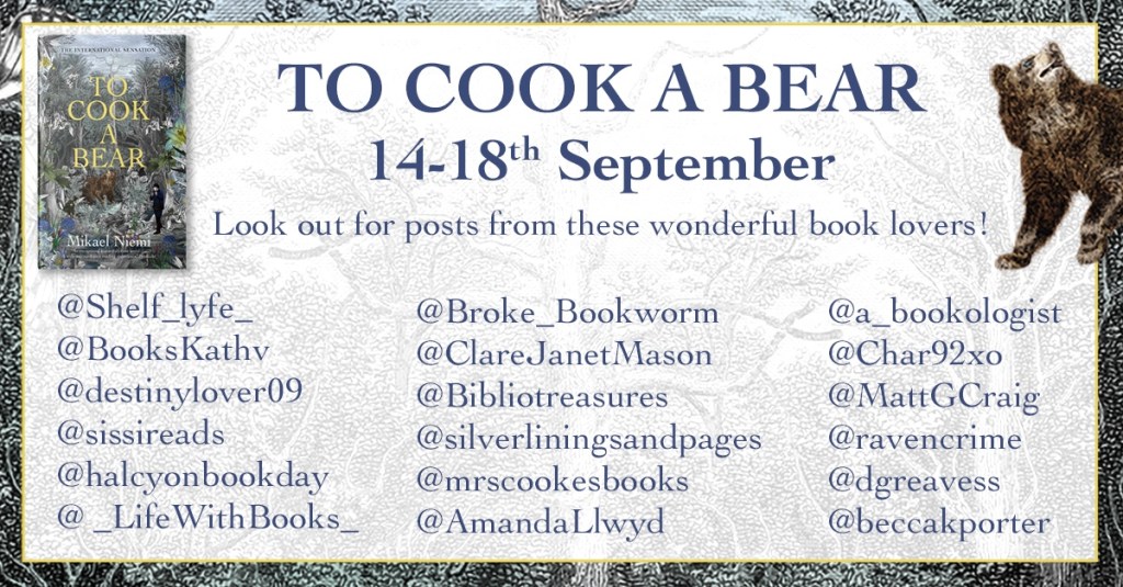 I have to be honest and say there are some moments of shocking brutality in To Cook a Bear which is hard to read at times but there is also so much beauty and a real sense of tranquility to be found. The prose is so stunning and the rendering of 19th century Sweden is endlessly fascinating, especially the folklore from Sami culture. It’s not an area I am overly familiar with and I was so intrigued by the way these characters experience life in the extreme climate they have to deal with. To Cook a Bear is a truly wonderful book about faith, prejudice, poverty and morality. It is masterfully written and translated beautifully. This gripping and intelligent book is definitely going to be one of my favourites of the year. I cannot recommend it highly enough.
