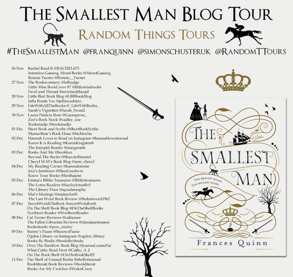 There are some characters that just stick with you long after finishing a book and Nat is unquestionably one of them. I was rooting for him from the very first chapter and he is up there on my list of favourite book characters ever. His compassion, wit and unique position during a very turbulent era of history makes following his life story endlessly engaging. The Smallest Man is a work of fiction but it has its basis in fact and the author has so expertly woven Nat Davy and his friends/enemies into the fabric of history that he feels so completely real. I had a massive smile on my face for almost the entirety of the book, at least when my heart wasn’t breaking for Nat in the sadder moments.