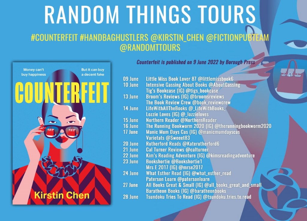Counterfeit is just the sort of book I adore – it’s smart, sexy and razor sharp with a story I was completely and utterly invested in. I don’t want to give too much away but I have to say how impressed I was with the route this fabulous book took – nothing is as simple as it first appears, there are layers of nuance and social commentary that build up slowly but surely throughout. Ava is not a one-note heroine and Winnie is a complex antagonist. Together they make Counterfeit a brilliantly assured and compelling novel that draws the reader in and then twists the narrative beautifully. I couldn’t recommend Counterfeit more highly, it’s one of my favourites of the year so far and Kirstin Chen has a new fan in me!