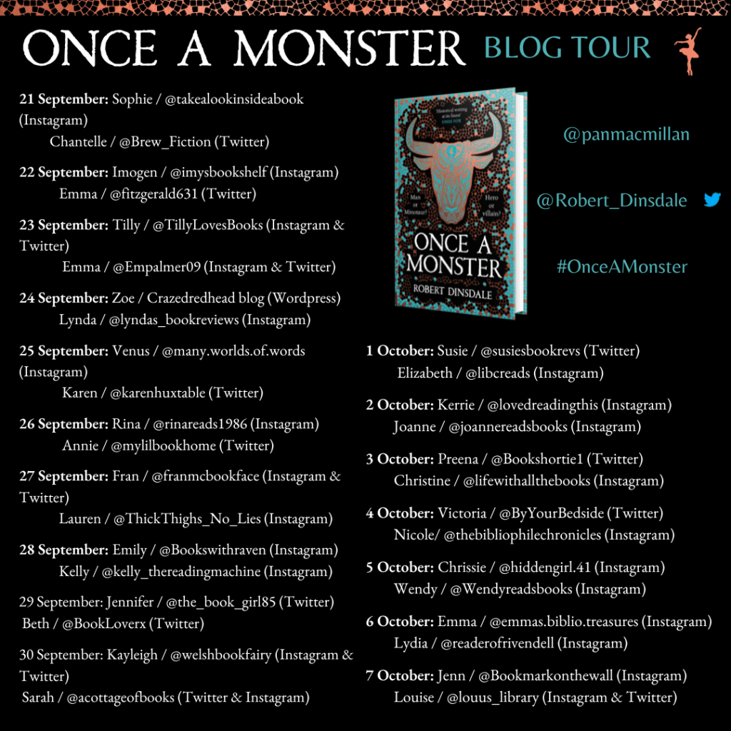 The main characters of Nell and Minos are beautifully crafted and the relationship between them is magical and moving. I found Nell easy to root for and Minos deeply intriguing and layered with myth and magic. Once a Monster looks at the nature of monstrosity and the morality of man with an imaginative vividness that makes for a truly special read. It is something rather different in the vast pantheon of mythological retellings and I would highly recommend adding it to your TBR list!