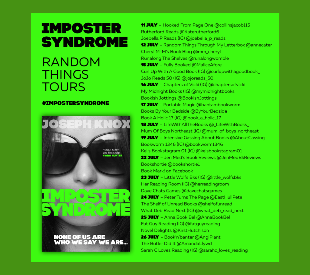 I was fascinated by the premise of Imposter Syndrome and I also love thrillers about con artists so I was excited to read this one. It was every bit as good as I’d hoped – razor sharp, witty, fast paced and furiously addictive. We are thrown into the life of Lynch and suddenly caught up in a web of secrets, lies and danger. Imposter Syndrome is unlike anything else I’ve read and, this being my first book by Knox, I have to say that I adore his style. There is a sort of off kilter sharpness that I really enjoyed and that worked perfectly in this high stakes cat and mouse game Lynch finds himself in.